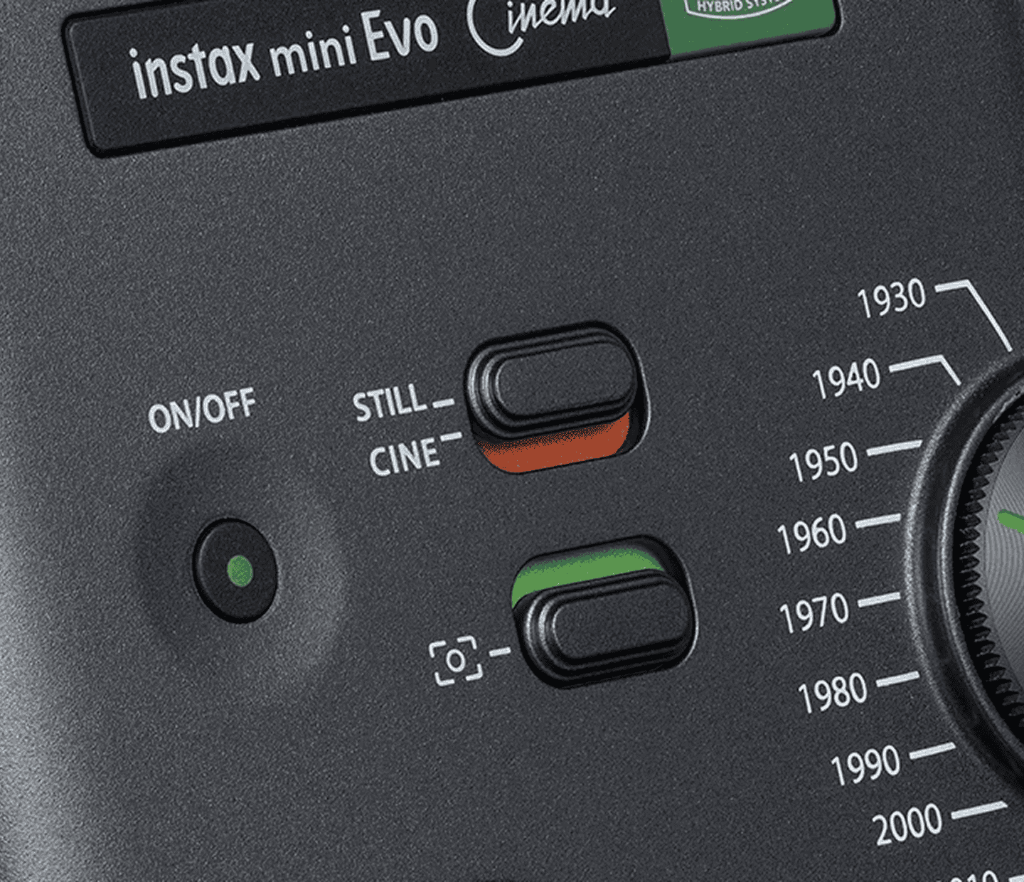 Built with ‘feeling’ in mind, the instax mini Evo Cinema™ hybrid instant camera comes with an analog-style printing operation lever – lift, twist and print. There’s even the satisfying ‘click’ to go with every turn.