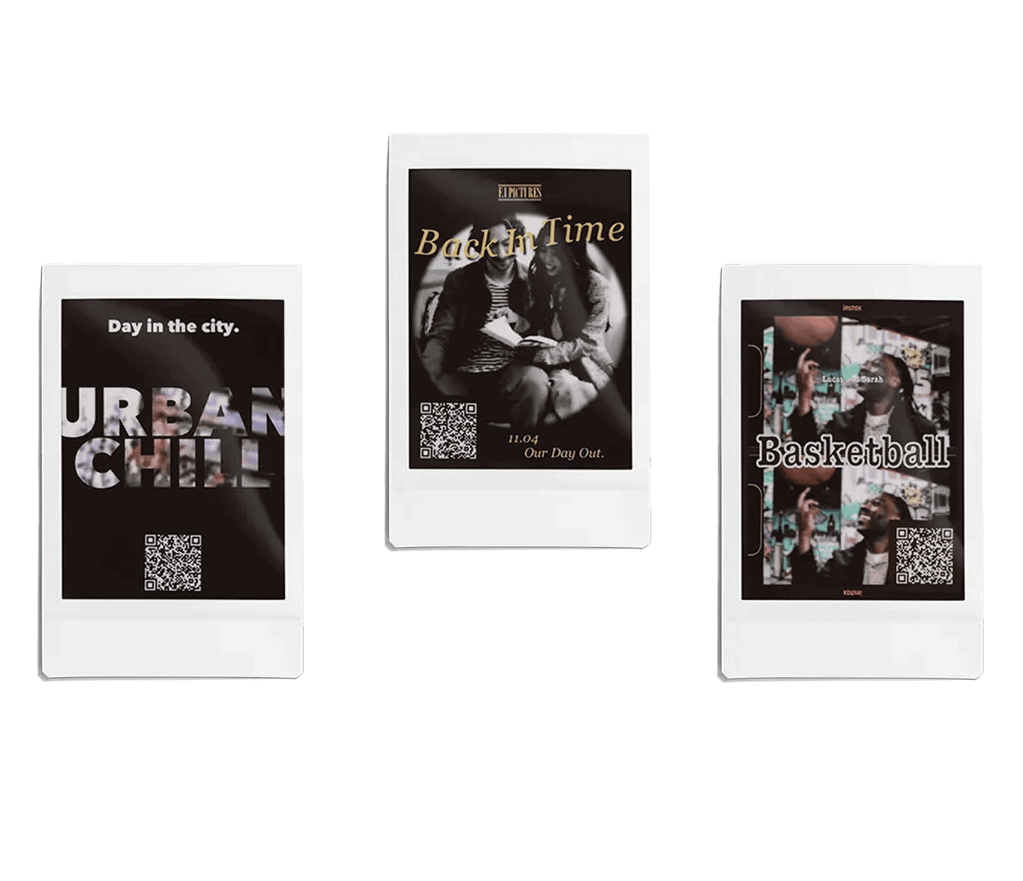 Elegant, curated Poster templates – the perfect way to turn your instax™ mini instant photo into a refined, visually compelling keepsake. With a variety of poster templates and patterns, each design enhances your content without distracting from the tonality of your creation.