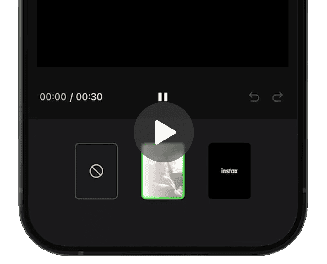 Create the best version of your video by refining it in the free downloadable instax mini Evo™ app. Import via Bluetooth® or Wi-Fi, then craft up to 30 seconds of cinematic storytelling with effortless editing and sleek, intuitive control. Ideal for giving your videos that extra touch before sharing them with friends and family.