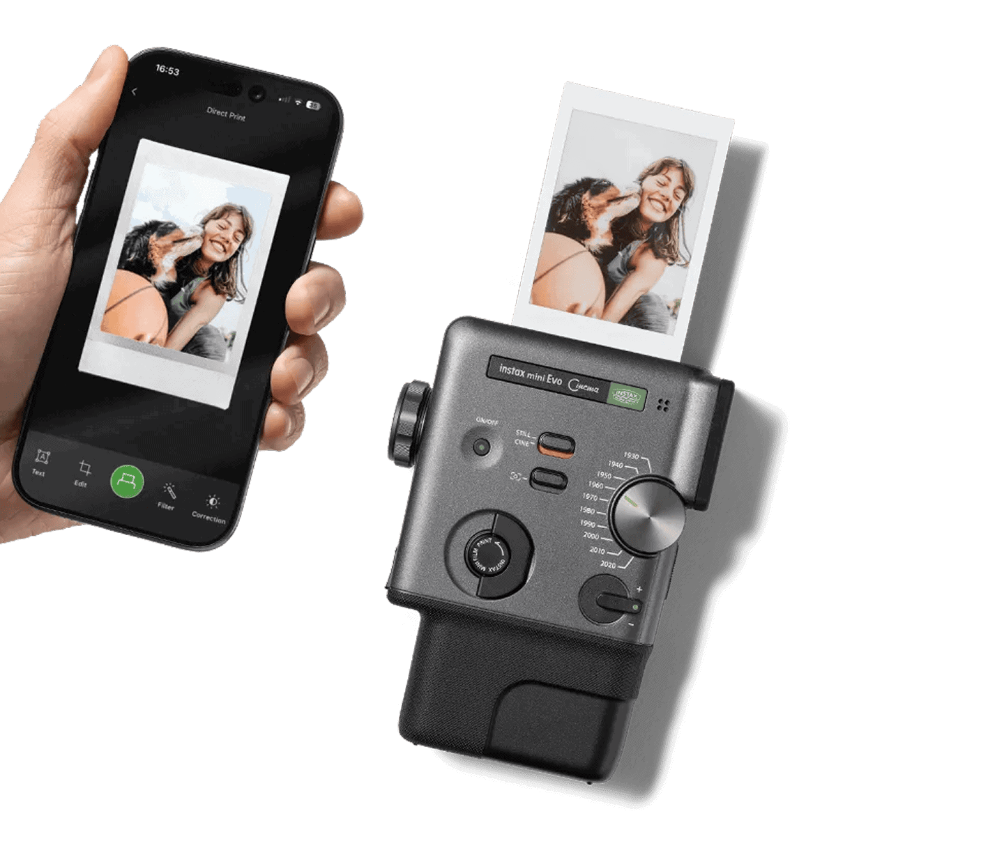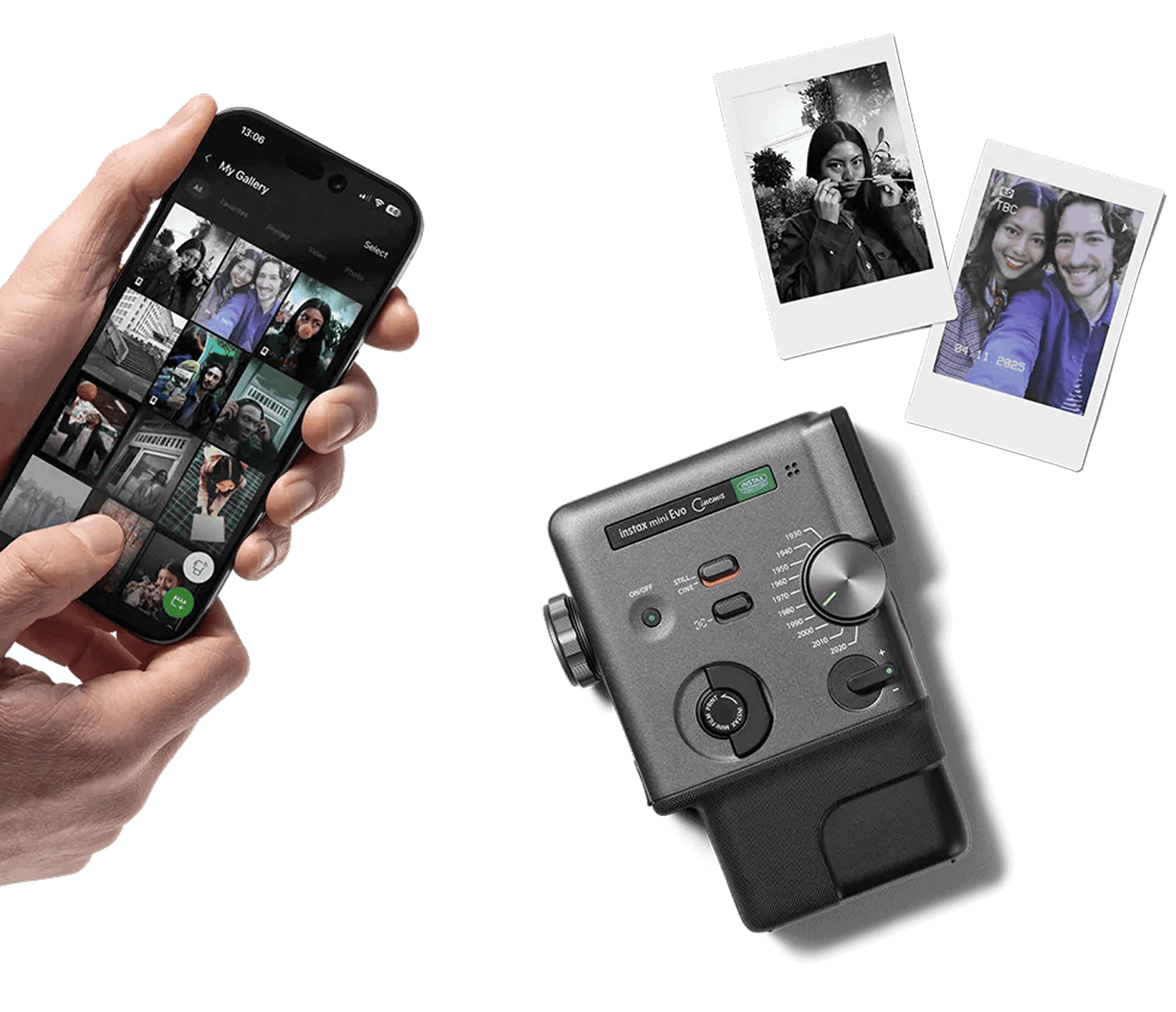 Print directly from your smartphone via the free instax mini Evo™ app. Send any photo on your device straight to the mini Evo Cinema™ hybrid instant camera via Bluetooth® and watch it print out a high-quality instax™ mini instant photo.